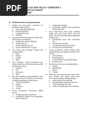 Soal Uh Ipa Biologi Smp Kelas 7 Semester 2bab Ciri Ciri Makhluk Hidup Pdf