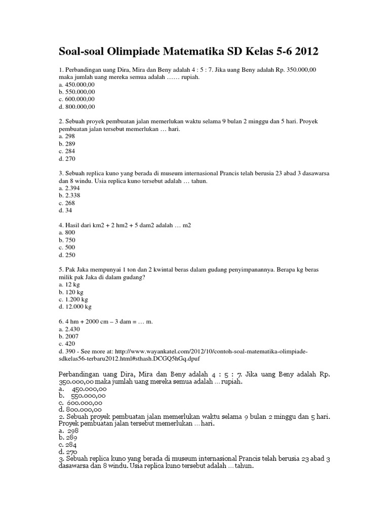 Kumpulan Soal Olimpiade Matematika Sd Kelas 5 Dan 6